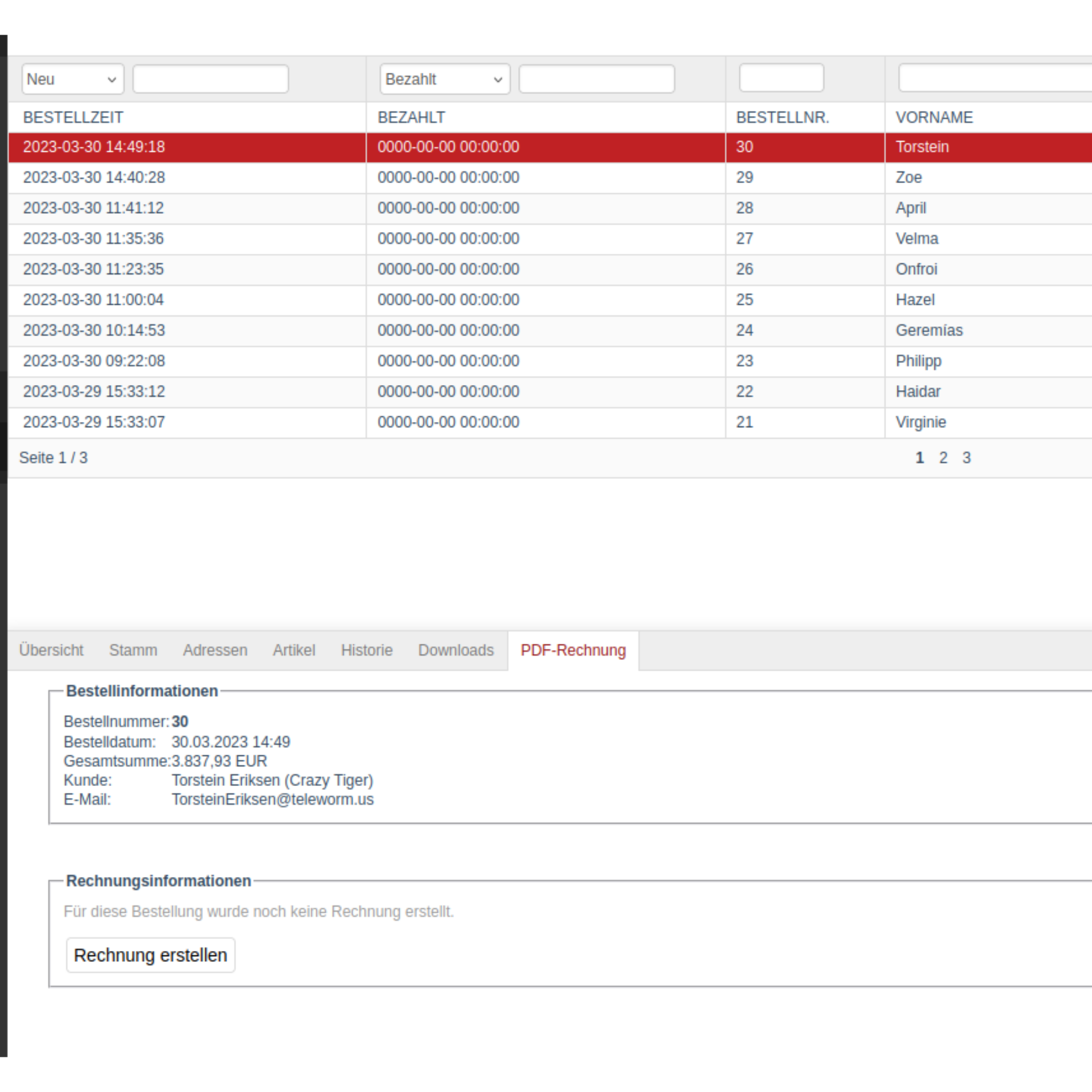 | Automatische PDF-Generierung | Rechnungen werden bei Bestellbestätigung automatisch erstellt |
